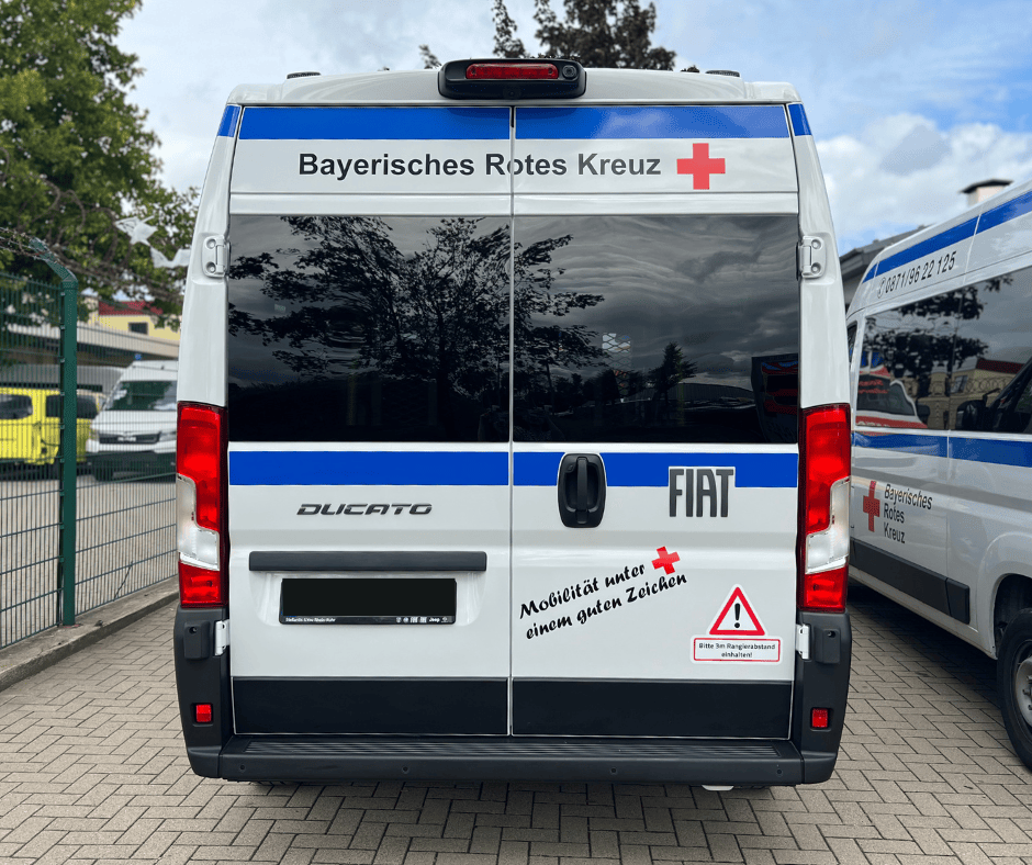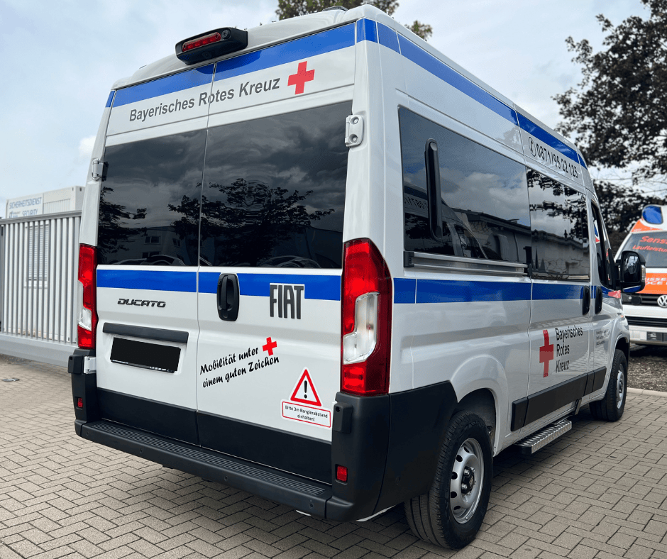 Der Fiat Ducato L2H2 wurde speziell für den barrierefreien Transport ausgestattet und verfügt über einen Hecklift, vier Rollstuhlplätze sowie drei Einzelsitze.