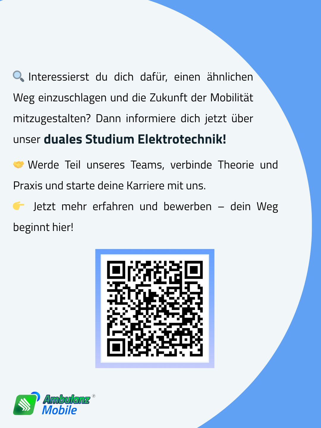 Heute möchten wir Max Baumann vorstellen, eines unserer jungen Talente, der 2018 sein duales Studium für Elektrotechnik bei Ambulanz Mobile begonnen hat. Von Anfang an war er Teil unserer Abteilung Elektrotechnik, unterstützte laufende Projekte und übernahm schon bald eigene Aufgaben in der Fahrzeugentwicklung. Nach dem Abschluss seines Bachelorstudiums im Jahr 2023 setzte Max seinen akademischen Weg mit einem Masterstudium fort und blieb gleichzeitig als Werkstudent Teil unseres Teams.