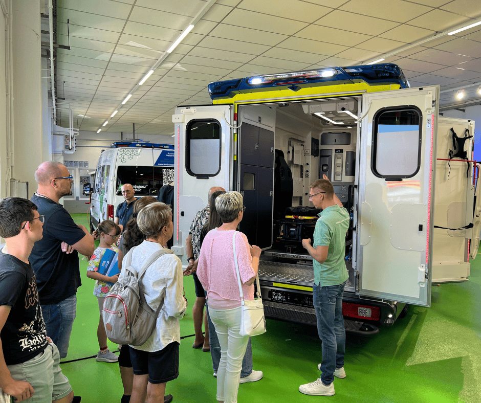 Am Tag der offenen Unternehmen haben wir viele interessierte Besucherinnen und Besucher bei uns begrüßt und ihnen spannende Einblicke hinter die Kulissen unserer Fahrzeugproduktion gegeben. Dabei konnten wir unsere Leidenschaft für Innovation im Sonderfahrzeugbau zeigen und auch die vielfältigen Karrieremöglichkeiten bei Ambulanz Mobile vorstellen.