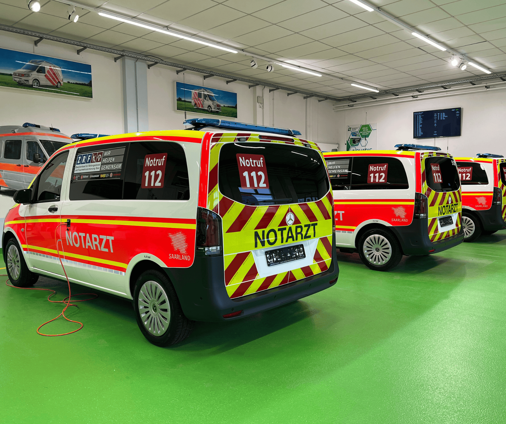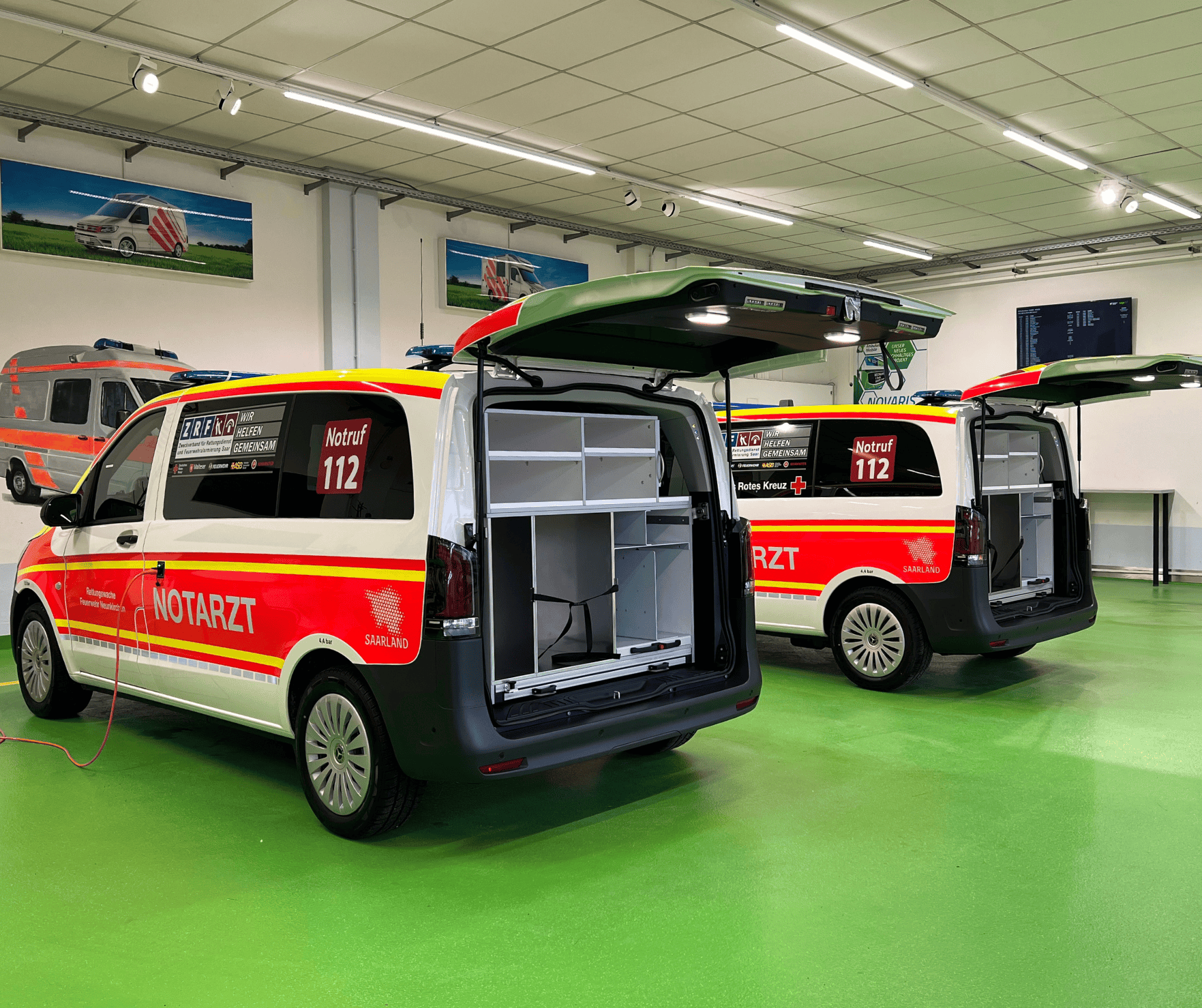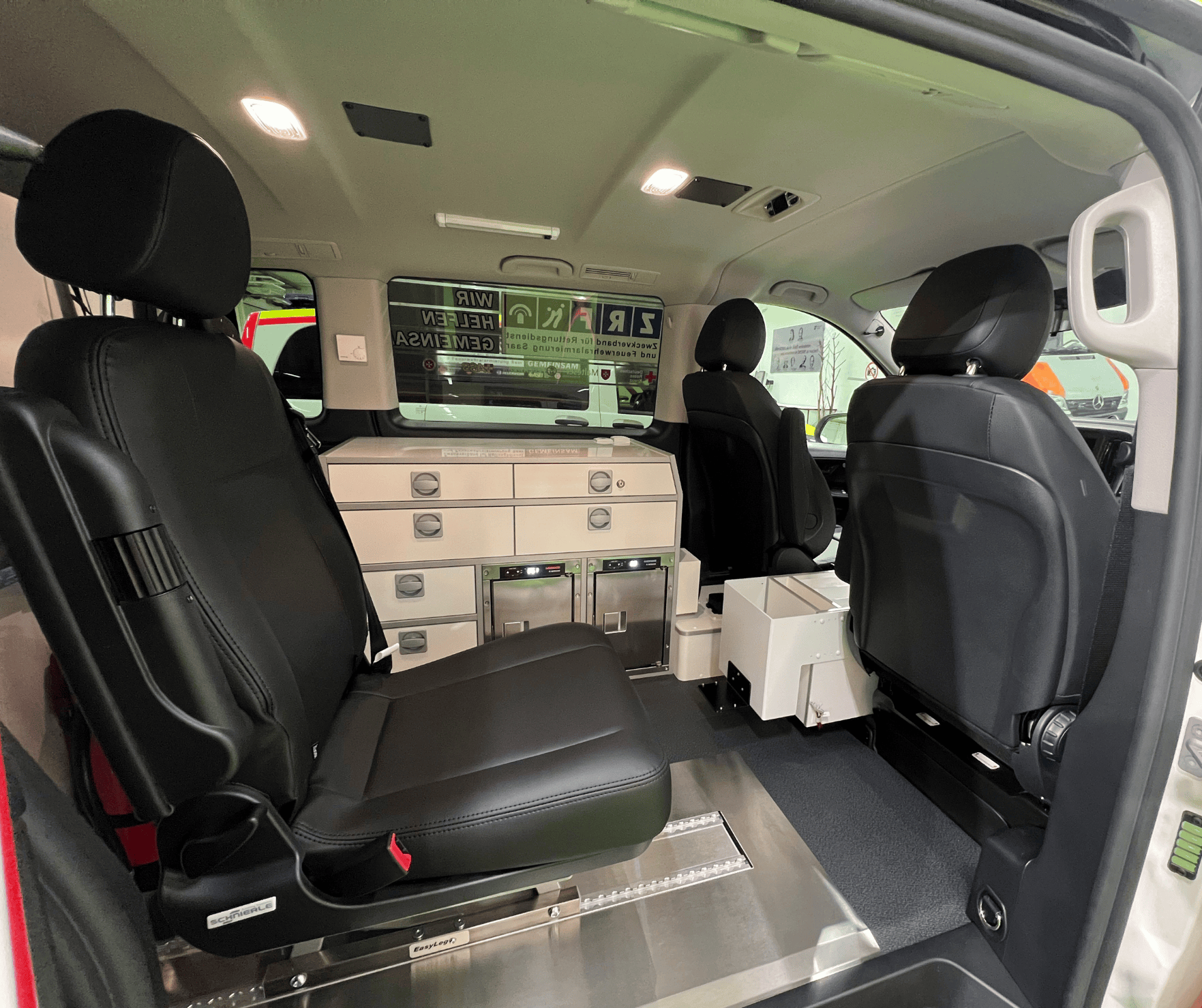 Basierend auf dem Mercedes-Benz Vito, ausgestattet gemäß DIN 75079 sowie mit einem maßgeschneiderten Innenausbau inklusive eines hochwertigen und funktionalen Vekaplan-Schranksystems, erfüllen die Fahrzeuge zuverlässig die hohen Anforderungen des täglichen Rettungsdiensteinsatzes.