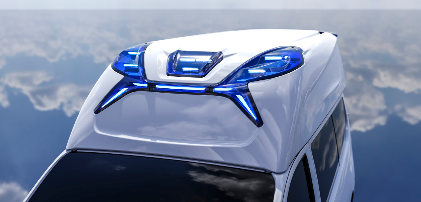 Das vollintegrierte Blaulichtsystem mit dynamischem Design sorgt für maximale Sichtbarkeit und fügt sich elegant in das Gesamtdesign ein.